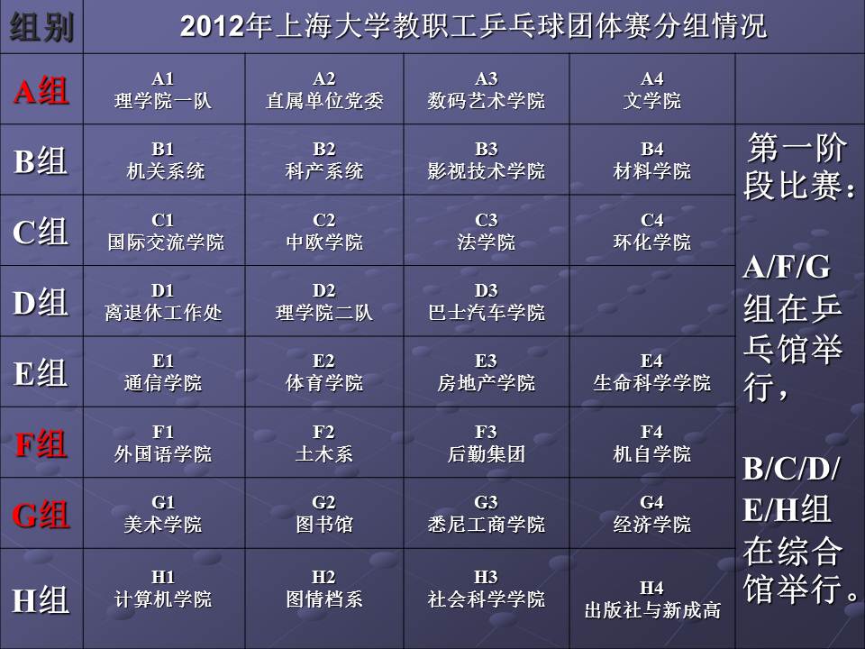 2012年3月16日,上海大学教职工乒乓球团体赛领队抽签暨协调会在校本部行政楼501会议室召开。会议由校工会副主席姜继平主持。 姜继平首先向与会同志介绍了本次乒乓球团体赛的组队情况和具体的赛事安排。他说,今年的乒乓球比赛,我校共有31个团队参加,是历年来报名组队最多的一次。因此,更加需要体育学院、体育中心、后勤、保卫等部门的通力合作。他强调了比赛前后的注意事项和时间节点,要求各队抓紧赛前的准备性训练,组好队,认真参赛,希望各队取得好成绩,在比赛中量力而行,坚持友谊第一、比赛第二的原则。 校工会 |